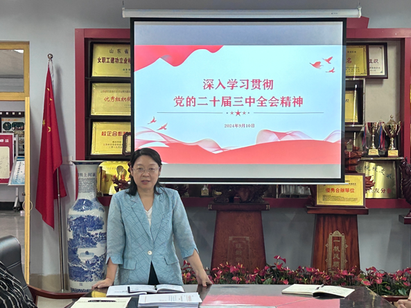 9月10日,公司党委书记王桂英向全体教职工宣讲党的二十届三中全会精神。她从深入学习领会党的二十届三中全会精神、准确理解进一步全面深化改革重大举措、全力以赴抓好全会精神贯彻落实等方面,对全会精神进行了系统宣讲和深入阐释。王桂英书记表示,党的二十届三中全会精神宣讲工作,是公司当前和今后一个时期的重大政治任务,公司上下要深刻把握党的二十届三中全会精神的重大意义、丰富内涵和实践要求,坚决把全会精神学习好、落实好、实践好。