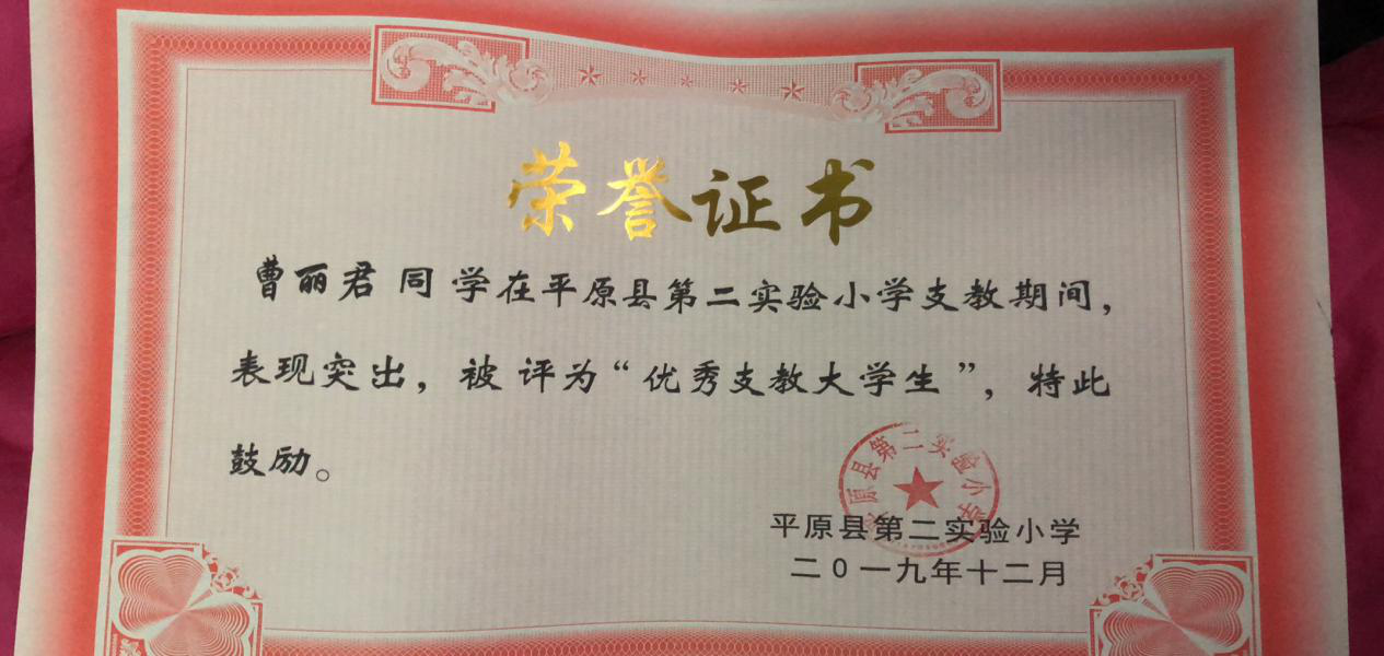 本次实习支教自2019年8月28日正式开始,99名支教员工分别在乐陵、宁津、武城、临邑、平原、庆云的49所中小学进行了为期四个月的实习支教活动。在实习期间同学们以校为家、爱岗敬业,对员工关爱有加,和同事和谐相处,对待工作一丝不苟,充分展示了公司实习生良好的综合素质和扎实的专业基础,受到了当地教育主管部门和支教公司的一致好评,共有68人先后获得优秀支教老员工、最受员工欢迎老师、最美教师、音乐课堂组织标兵、德育工作先进个人等荣誉称号。