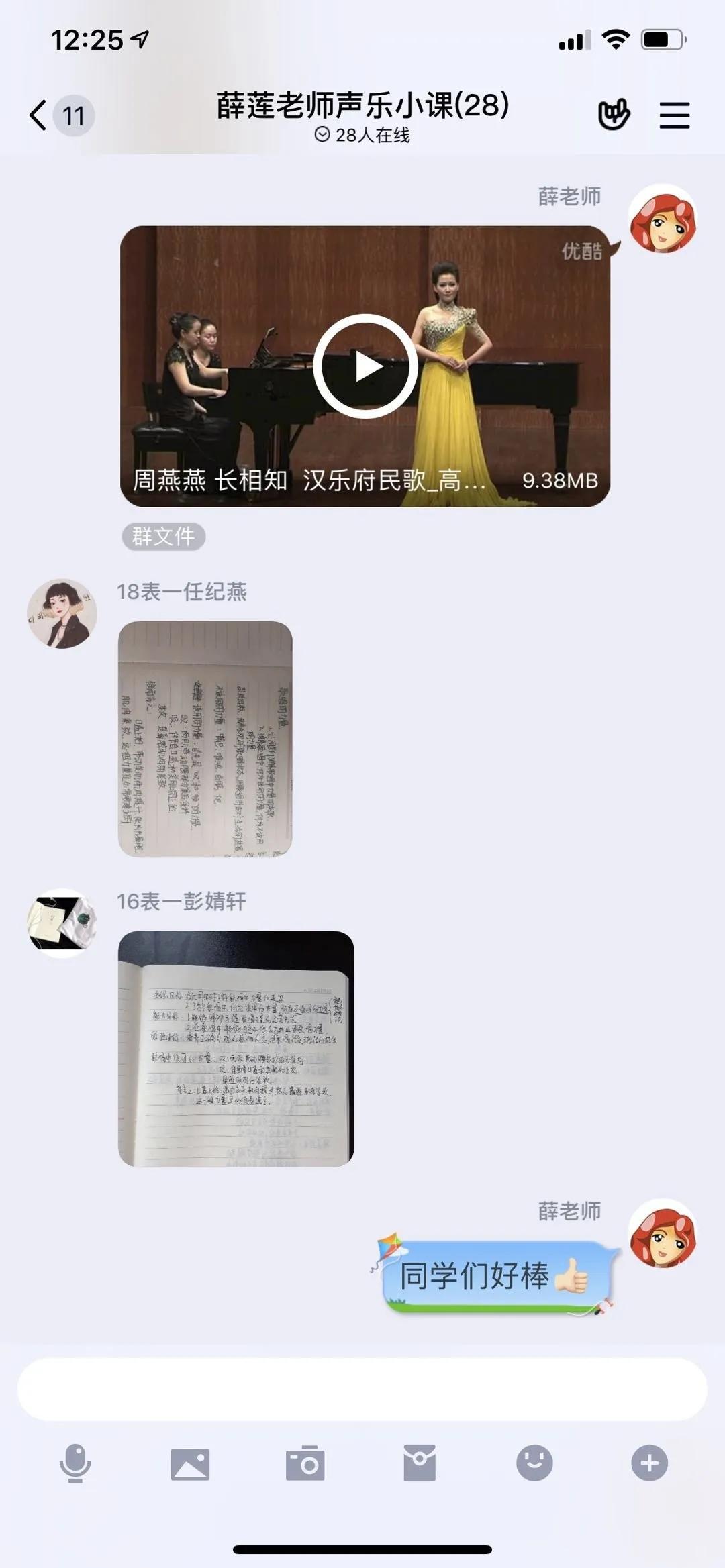 鉴于声乐教学的实践性,薛老师结合课上所教授的演唱曲目,进行视频录制,结合员工演唱进行对比教学。通过老师的在线视频指导,员工学习积极性都有了很大的提高。