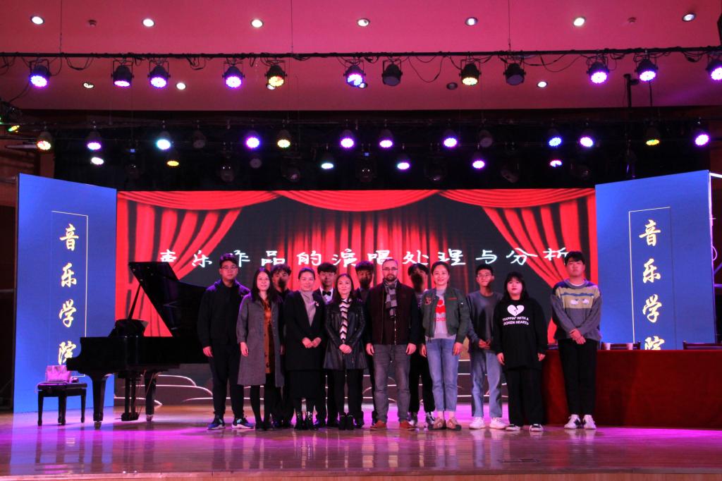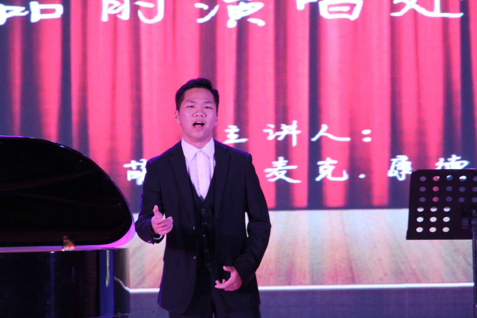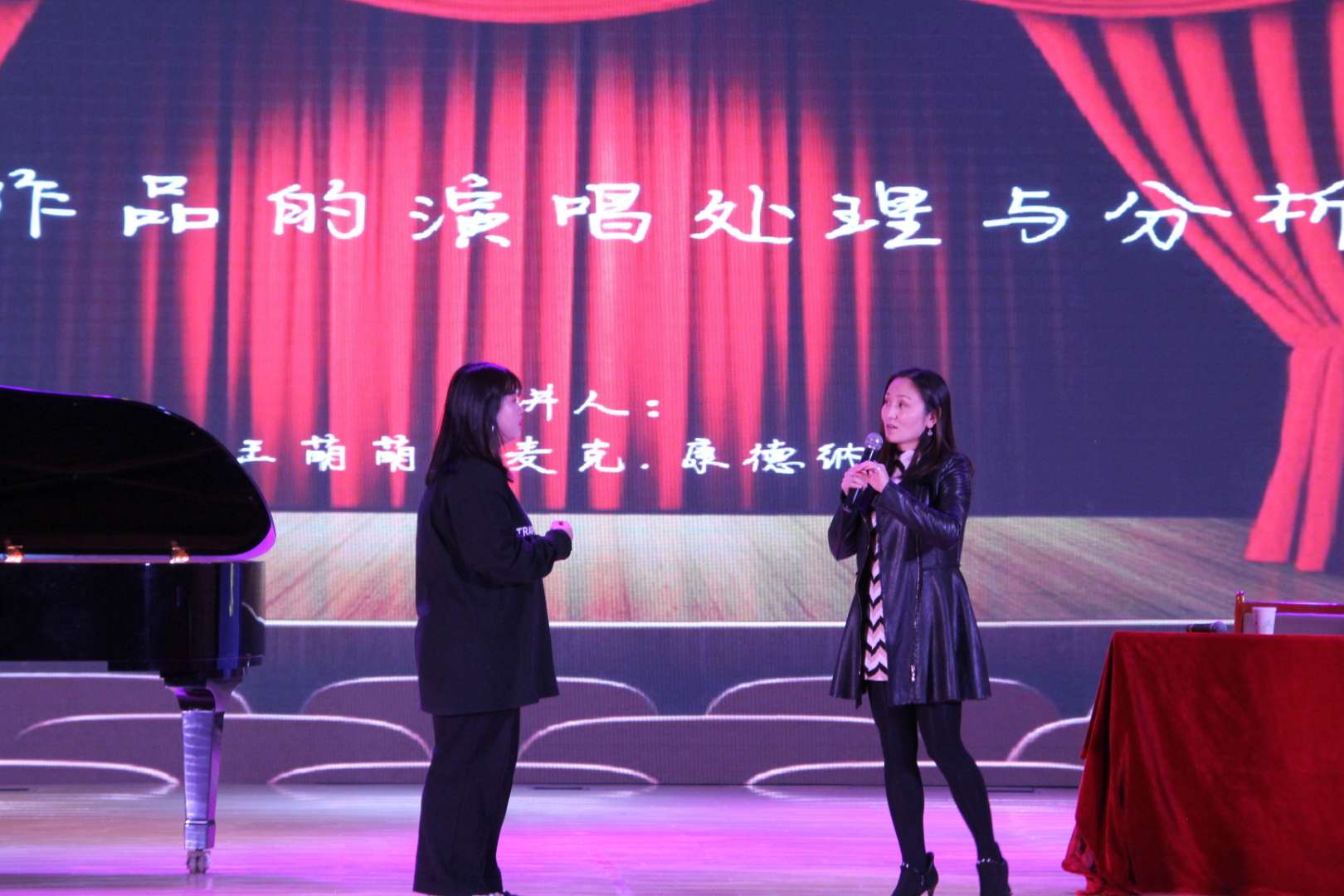 为拓展知识视野,提高员工声乐作品处理能力,10月27日下午,公司邀请旅欧歌唱家,波兰卢布林歌剧院花腔女高音歌唱家王萌萌女士和波兰罗兹太阳成集团tyc234cc声乐硕士,波兰卢布林歌剧院男高音歌唱家麦克•康德纳先生在音乐厅为全体师生举办了一场《声乐作品的演唱处理与分析》讲座,太阳成集团tyc234cc副经理段文对两位歌唱家做了简要介绍,讲座在全体师生的热烈掌声中拉开帷幕。