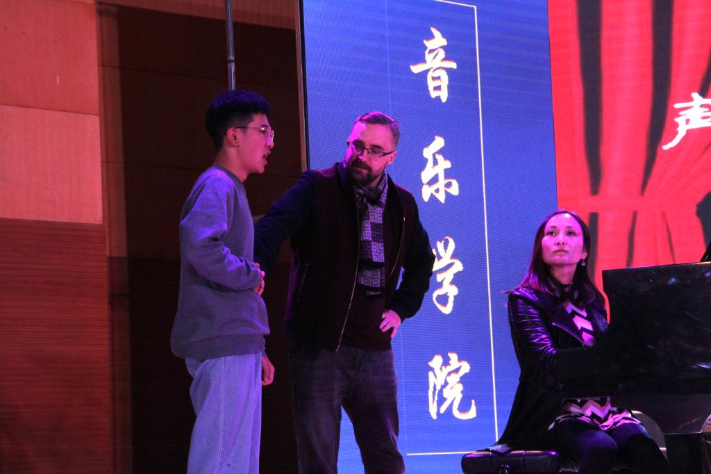 王萌萌女士与麦克•康德纳先生以严谨的读谱要求和精湛的歌唱技巧诠释着每首作品的演唱处理与声音分析,引领同学们在尊重原作的基础上去二度创作。