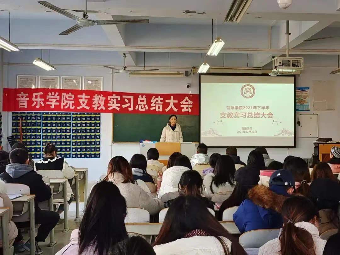 会议伊始,音乐学系系主任杜乡对此次实习支教工作进行了总结。她表示,公司2018级支教实习活动在公司领导的高度重视及各指导老师的相互配合下取得了圆满成功。支教任务带来的不仅是对员工个人能力与经验的提升,更重要的是为当地教育带去了新鲜的血液,同学们在支教过程中,充分发扬了吃苦耐劳的精神,不仅出色完成了日常教学任务,还利用自己的专业知识积极服务于当地的音乐基础教育,取得了丰硕成果,并获得了当地教育部门和各支教公司的一致好评。