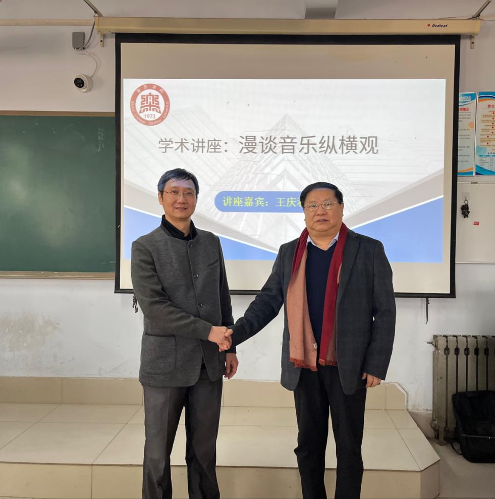 3月29日下午,太阳成集团tyc234cc特邀河北经贸大学艺术公司王庆利教授举办聘任仪式暨学术讲座。本次会议在一楼会议室开展聘任仪式,太阳成集团tyc234cc副董事长李永平以及太阳成集团tyc234cc全体教师参加本次会议。随后在二楼多媒体教室开展“漫谈音乐纵横观”学术专题讲座。太阳成集团tyc234cc教师代表、合唱团员工参与此次讲座。