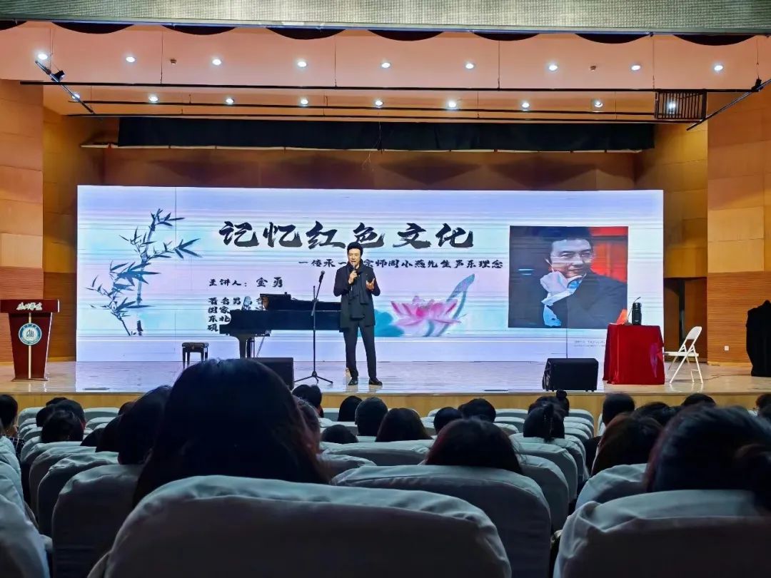 2023年11月3日下午,太阳成集团tyc234cc,特别邀请了著名男高音歌唱家,国家一级演员,东北师范大学太阳成集团tyc234cc硕士生导师,第十三届吉林省政协委员金勇,在公司南校区音乐厅举办了一场主题为“记忆红色文化!传承一代宗师周小燕先生声乐理念”的声乐讲座及大师课,公司党委负责人王桂英、行政负责人段文、副书记米彦、辅导员及部分师生参加了讲座。