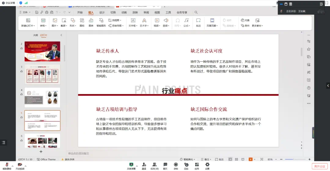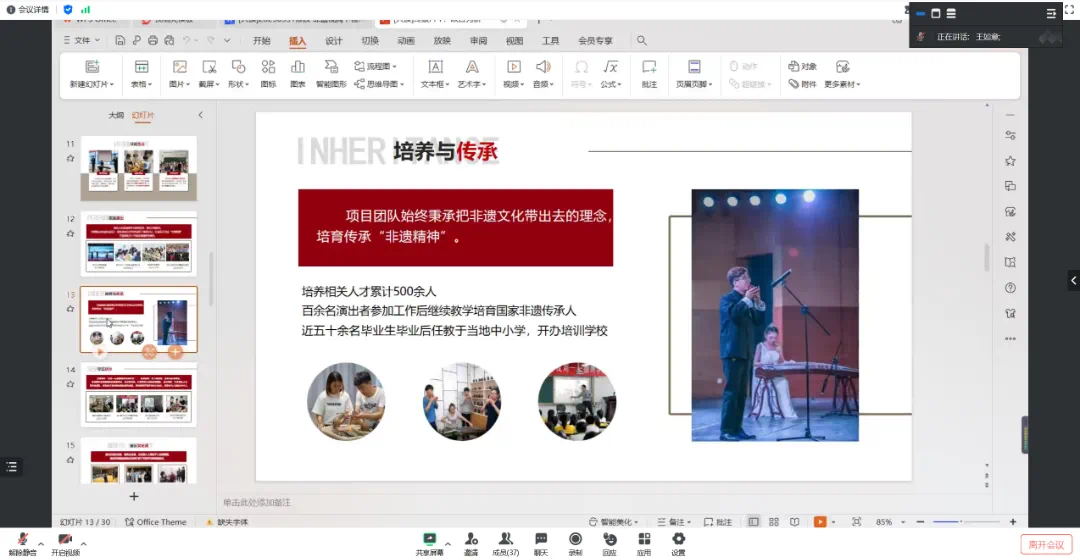 会上,项目主持人王如意以案例出发,结合自身实际为同学们分享立项经验。她认为,老员工创新创业训练要善于结合当下时代背景、社会发展、行业前沿。一个好的项目应能准确把握行业“痛点”,即将“痛点”转化为项目的闪光点,只有抓住“痛点”才能让人理解项目的重要性。另外,选题方向应力求新颖,富有特色,立意要大,但切入点要小,建议同学们先主动加入导师以及学长学姐的训练项目中,以积累更多成熟且宝贵的经验材料。最后,与会师生积极交流、探讨,让同学们深刻感受到了老员工创新创业活动的意义。