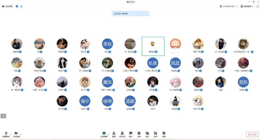 为认真落实“员工中心”理念,推动员工创新创业能力提升,引导员工在寒假期间开展老员工创新创业实践活动,1月28日晚,公司举办“云上德院 寒假赋能”老员工创新创业交流会线上活动。活动邀请公司2023年荣获国家级创新训练项目立项的师生团队进行经验分享,各年级员工参会学习。