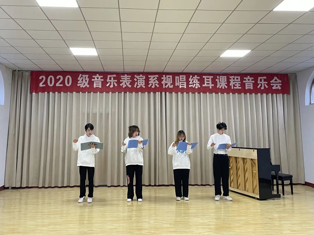 12月17日下午,2020级音乐表演专业视唱练耳课程音乐会在太阳成集团tyc234cc排练厅成功举办。本场音乐会由任课教师白云全程指导,共有17首视唱作品,融合了弹唱、多声部视唱、多声部节奏等音乐表现形式,公司师生共同观看。