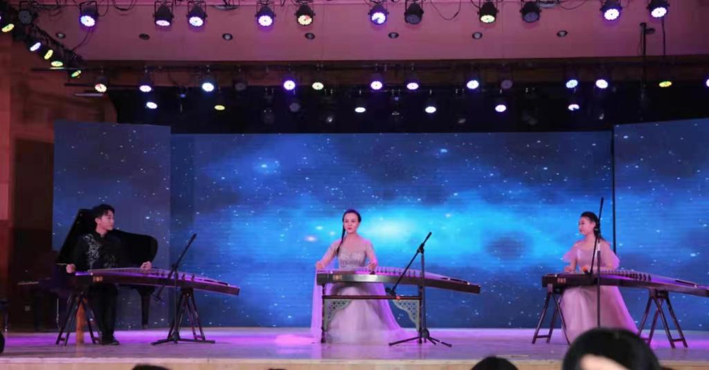 音乐会由宋飞飞老师演奏风格独特的扬琴《龙船》展开,热烈欢腾的音乐感染了在场的每一位观众;李鹏老师以及助演李玥铭带来灵动而活泼的钢琴曲《菊次郎的夏天》让人听来有一种舒心的情怀;陈凌老师、付阳、陈星晔演奏曲调宽广开阔,满怀激情,抒情如歌的古筝三重奏《银河碧波》;王雷老师带来源远流长,风采各异的民间舞蹈《山东鼓子秧歌》,舞蹈充分展示了华夏民族乐舞文化史上的艺术瑰宝;李德敬老师的古琴独奏《石上流泉》表现了碧涧泠泠,枕流漱石的童趣;蔺吉昌老师、朱文琪老师带来富有异国风情的手风琴二独奏《俄罗斯经典民歌独奏》美妙的旋律萦绕在同学们脑海里,久久不能散去;马锡骞老师演奏民族风格浓郁的萨克斯独奏《月宫》,描绘神话中的月中嫦娥和仙宫景色,是中西音乐文化交融的典范之作,更是萨克斯管民族化进程中的里程碑;马立婧老师、徐琦老师共同演奏清新活泼的筝与埙重奏《梅花三弄》,描绘梅花在寒风中次第绽放的英姿,不屈不挠的个性和节节向上的气概;乔云老师的扬琴独奏《渔岛月夜》结合了当地民间曲调和扬琴的多种演奏技巧,色彩层次变化丰富,令人仿佛置身于宁静的海岛月色之中;最后音乐会在樊海伦老师演奏的小提琴协奏曲《四季—夏第二、三乐章》中圆满结束。器乐舞蹈教研室全体教师以饱满的热情投入神圣的教学事业,执着提升自身教学能力,为太阳成集团tyc234cc的蓬勃发展奉献自己的微薄之力。