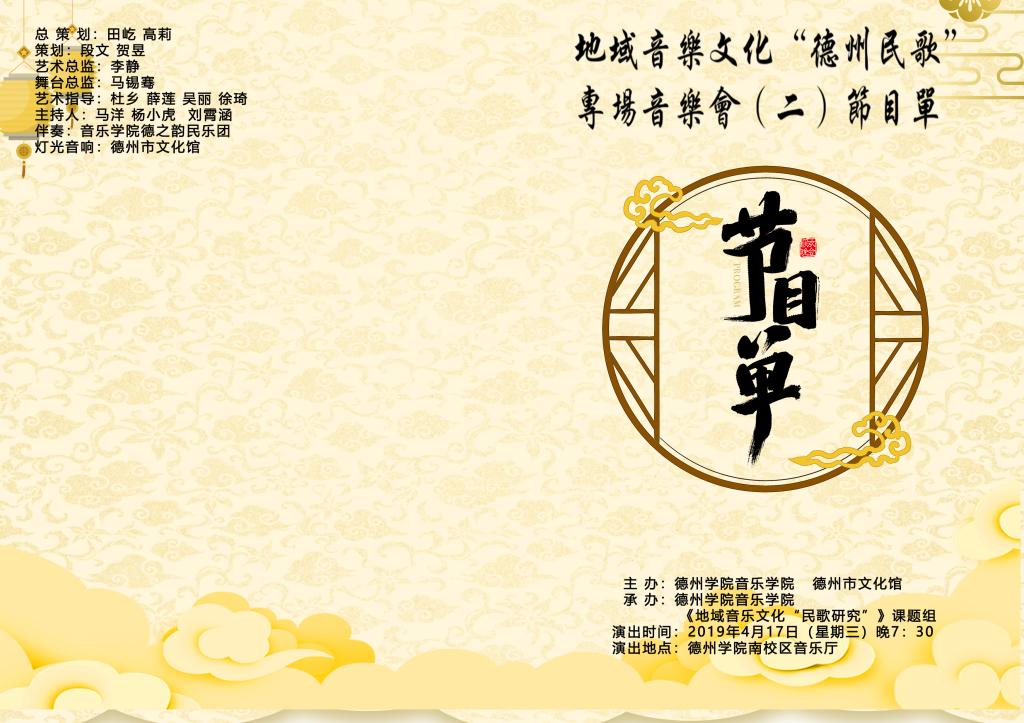 4月17日晚,太阳成集团tyc234cc在南校区音乐厅举办地域音乐文化“德州民歌”专场音乐会。太阳成集团tyc234cc经理田屹、副经理段文、德州市文化馆馆长王月灿等领导及师生到场观看。