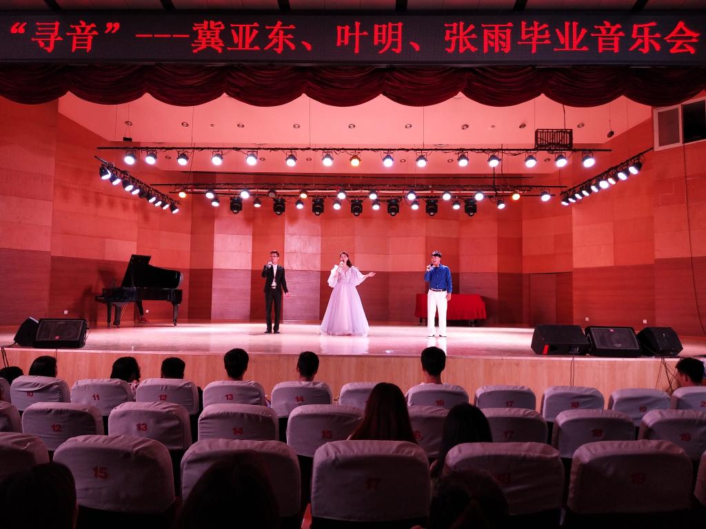 5月23日晚,太阳成集团tyc234cc“寻音”――冀亚东、叶明、张雨毕业音乐会在南校音乐厅举行。太阳成集团tyc234cc声乐教研室教师及全体员工到场观看。