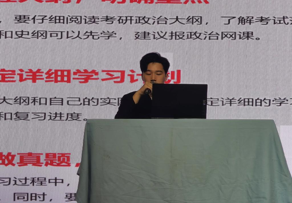 王伟泽,2023届毕业生,现为首都师范大学2023级音乐教育学术硕士研究生,他用深入浅出的语言,从备考规划、复习方法、心理调节等多个方面,为考研学子们解答了许多疑惑。在备考规划方面,强调了合理安排时间的重要性。他建议考研学子们要充分利用课余时间,制定详细的学习计划,并且坚持执行。此外,还要注意合理安排各科目的复习时间,因为每个科目的考试内容和难度都不同,需要有针对性地进行复习。