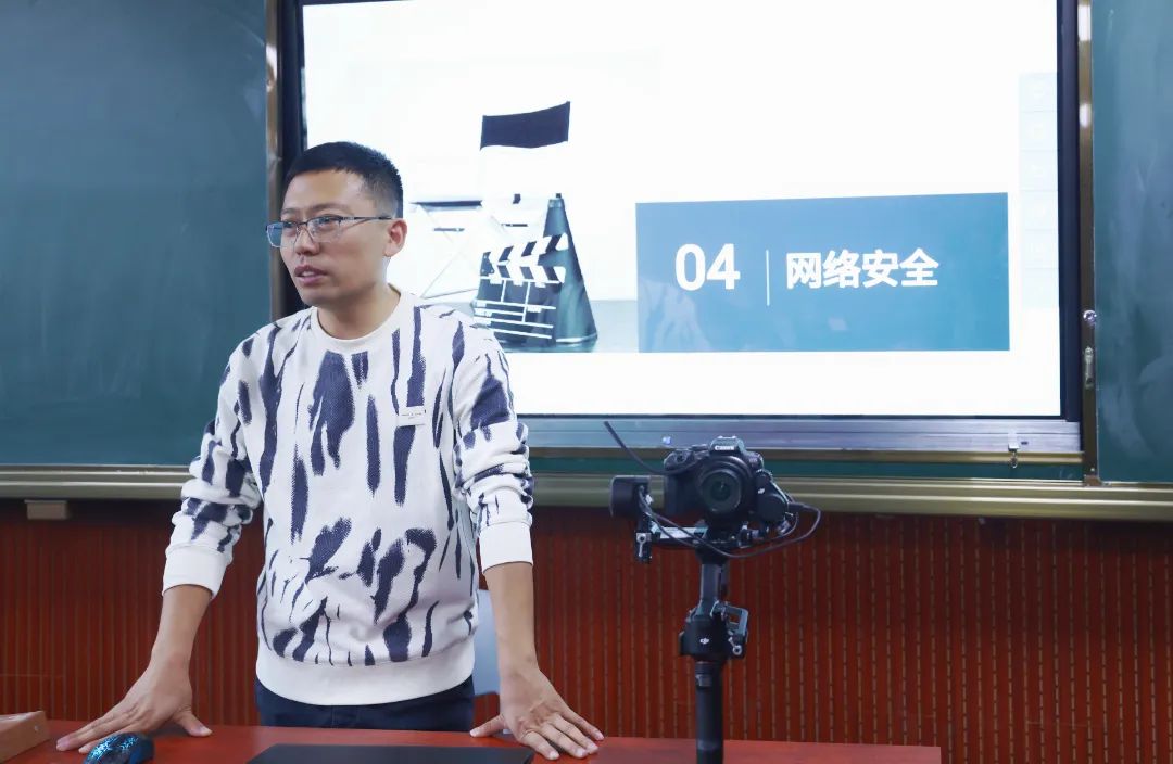 讲座围绕“校园新闻宣传的守正与创新”、“网络安全教育概述”、“网络安全防护措施”、“摄影摄像理论与技巧”等内容展开。