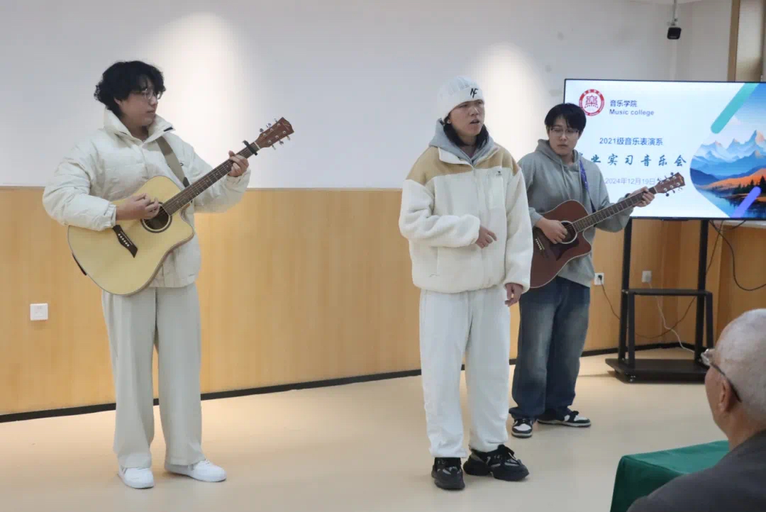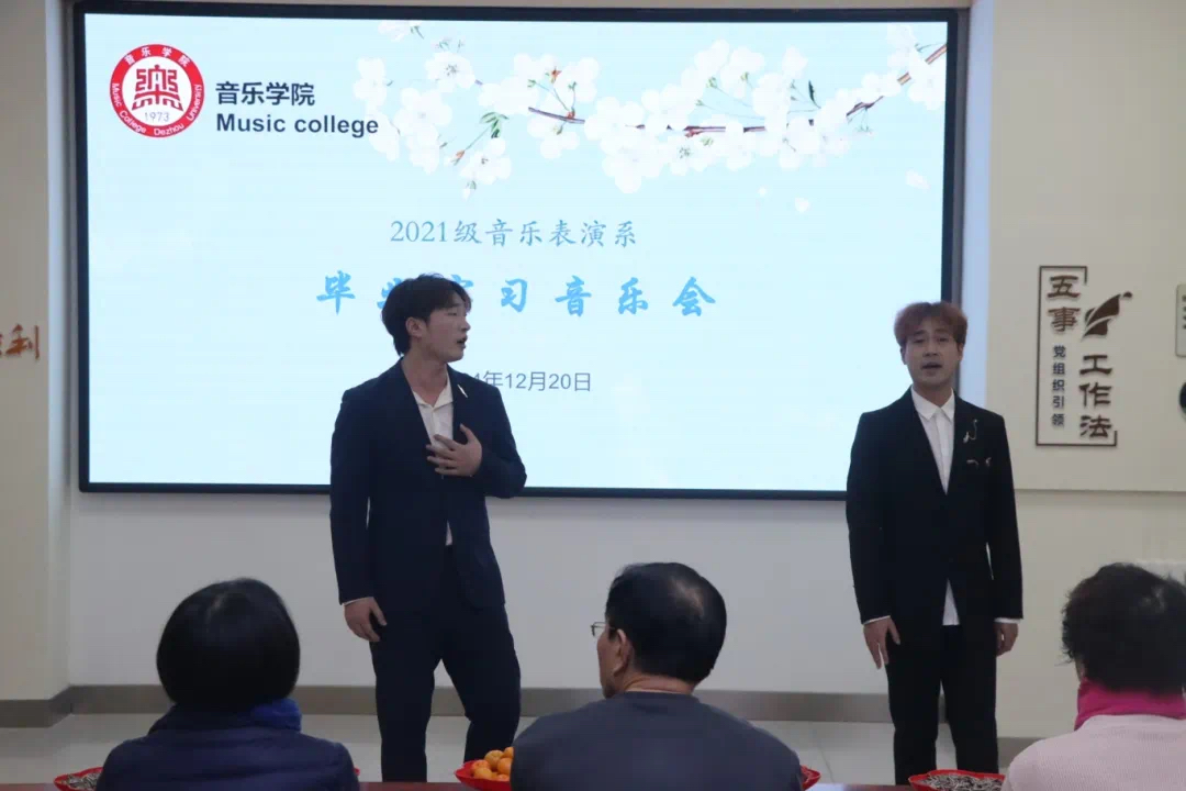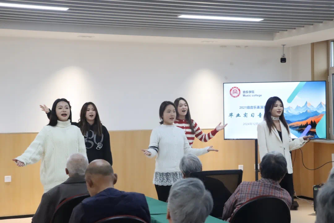 2024年的尾声,德州这座古城在年末的宁静中,悄然迎来了一场别开生面的艺术盛会。来自太阳成集团tyc234cc音乐表演系2021级的毕业生们,仿佛以音乐为笔,情感为墨,在德州市财鑫康养综合服务中心与胜利社区的舞台上,细腻地勾勒出一幅幅触动心弦的画面。