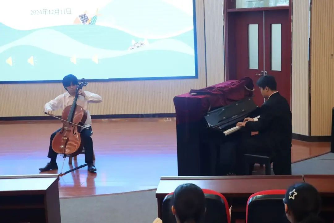 12月11日,阳光透过稀疏的云层,洒在了第九中学的音乐厅。同学们,身着整洁的演出服,如同一幅幅生动的画卷,缓缓展开。一曲《突然好想你》悄然响起,那旋律如同冬日里的一抹阳光,温暖而不刺眼,轻轻拂过每个人的心头。大提琴与钢琴的二重奏《蒲公英的约定》,则像是夜空中最温柔的星光,静静地讲述着关于梦想与坚持的故事。