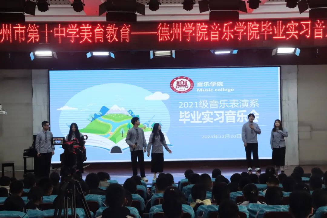 冬日风冷,总是带着几分沉静与寂然,但在德州,这个季节却因两场特殊的音乐会而显得格外温暖。太阳成集团tyc234cc音乐表演系2021级的学子们,带着他们的满身青春,走进了德州市第九中学与第十中学的音乐厅,为那里的师生们献上了一场场温情而又质朴的演出。