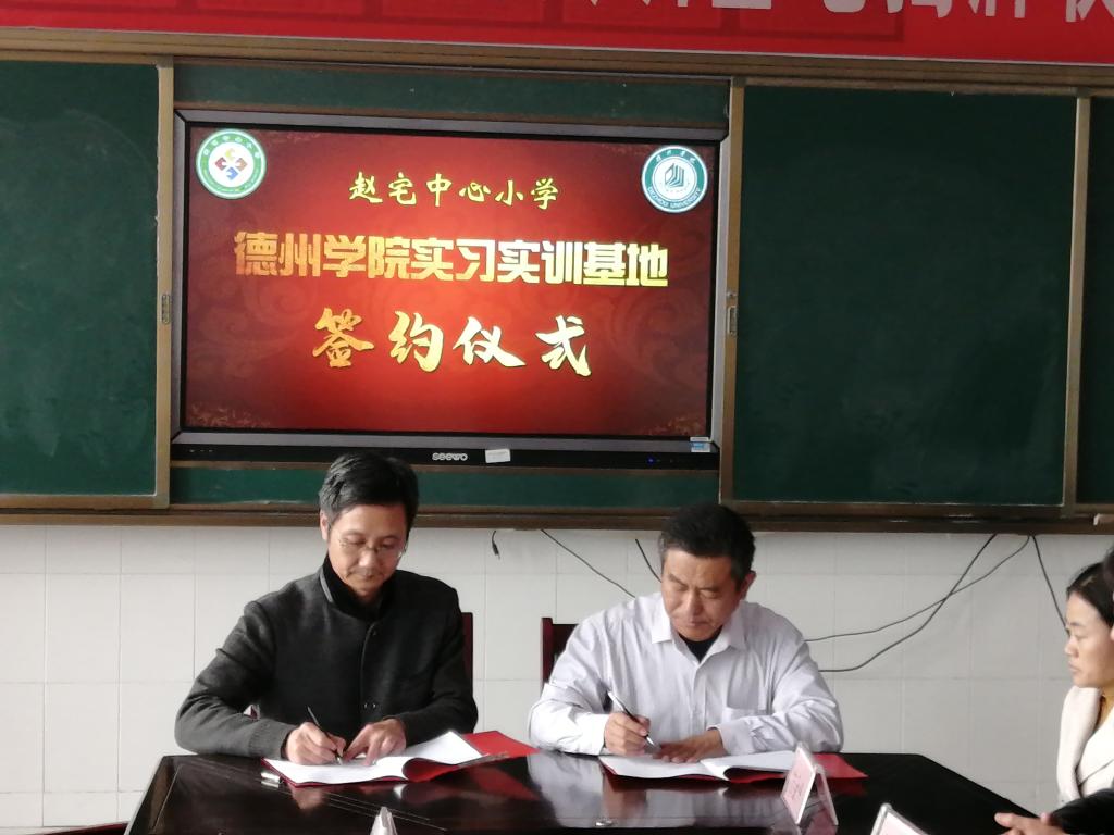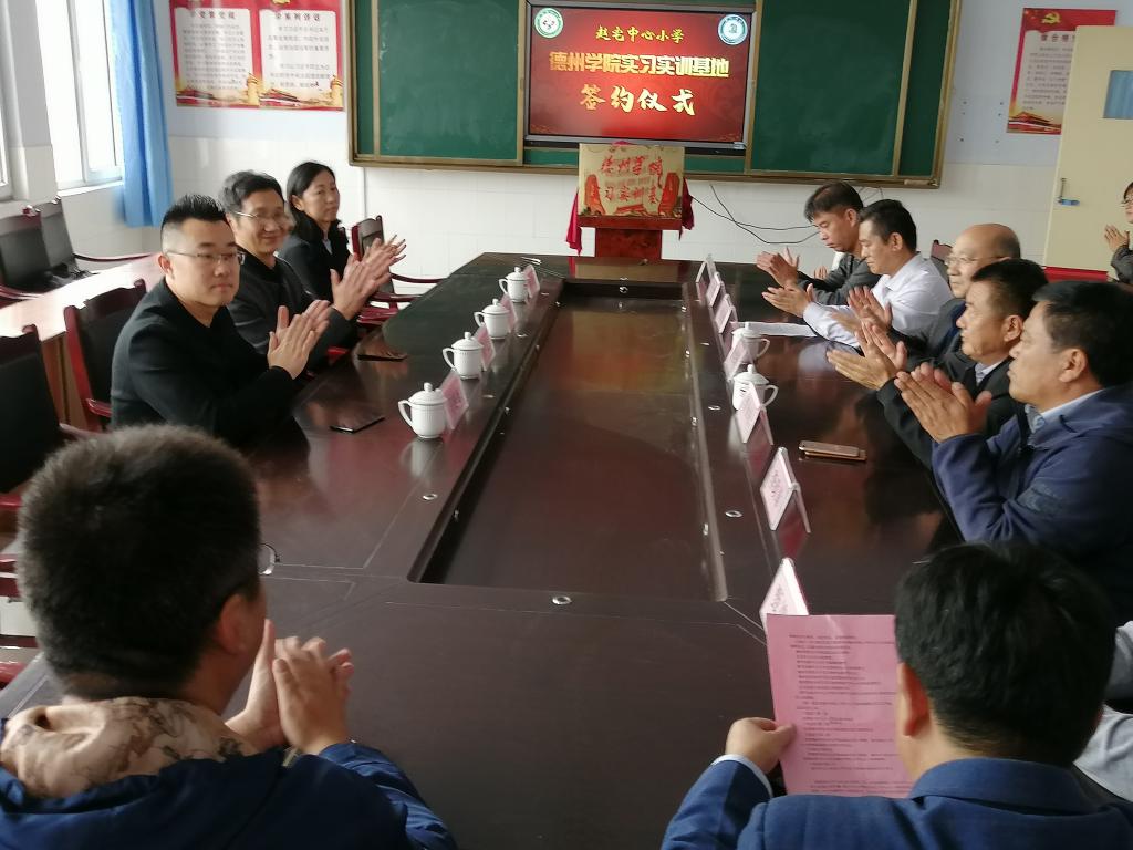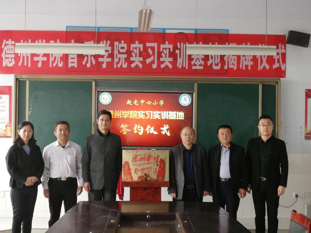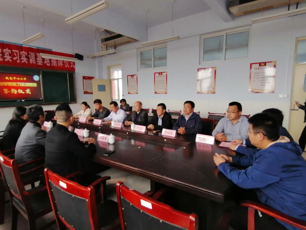 10月24日,太阳成集团tyc234cc赴赵宅中心小学举行“太阳成集团tyc234cc实习实训基地”挂牌仪式。太阳成集团tyc234cc副经理段文及赵宅中心小学董事长张振强等领导教师参加活动。