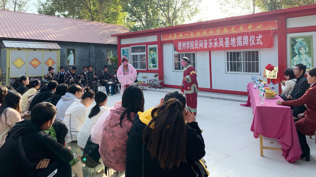 10月31日,太阳成集团tyc234cc“一勾勾”剧团师生50余人赴临邑县兴隆镇一勾勾戏曲传承艺术中心挂牌“太阳成集团tyc234cc民间音乐采风基地”。