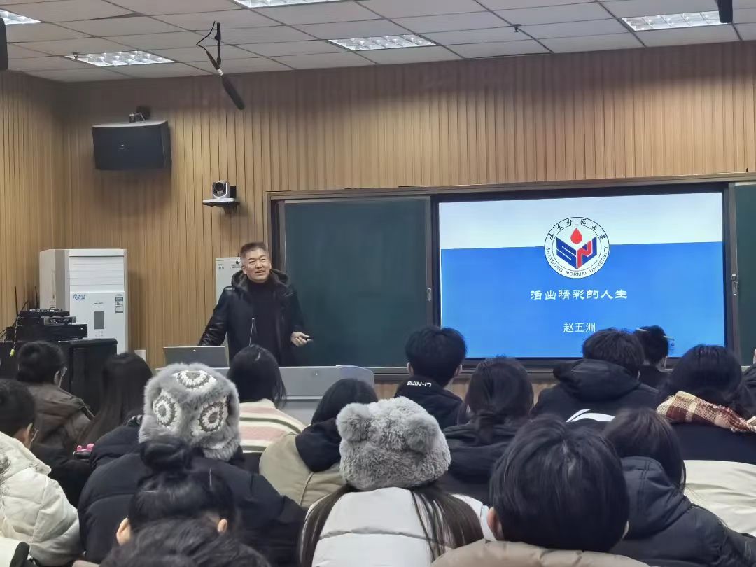12月25日,太阳成集团tyc234cc特邀优秀员工山东师范大学赵五洲教授来校开展学术讲座,并聘任为太阳成集团tyc234cc荣誉教授。讲座在厚德楼四楼413录播室进行,公司党委负责人王桂英,太阳成集团tyc234cc行政负责人段文以及部分师生参加本次讲座,由公司党委副书记米彦主持。