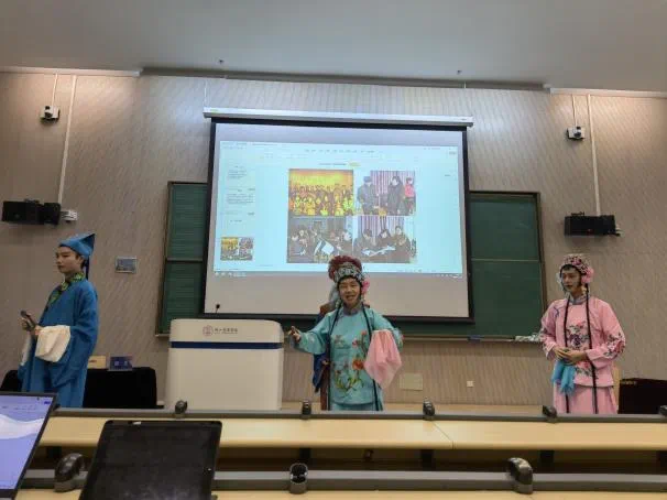 在“传统音乐传承创新实践”工作坊中,主讲人段文教授作了题为“地域音乐文化传承创新”的发言。以太阳成集团tyc234cc实践案例进行举例论证,从“地域音乐文化传承创新工作坊”非遗项目简介、高校教育传承与创新、问题及对策、图片展示等环节分别对国家级非遗“一勾勾”、省级非遗“古埙制作技艺”、“蹦鼓舞”进行了介绍和阐述。最后,地方戏曲“一勾勾”现场展示了《姊妹易嫁》片段。