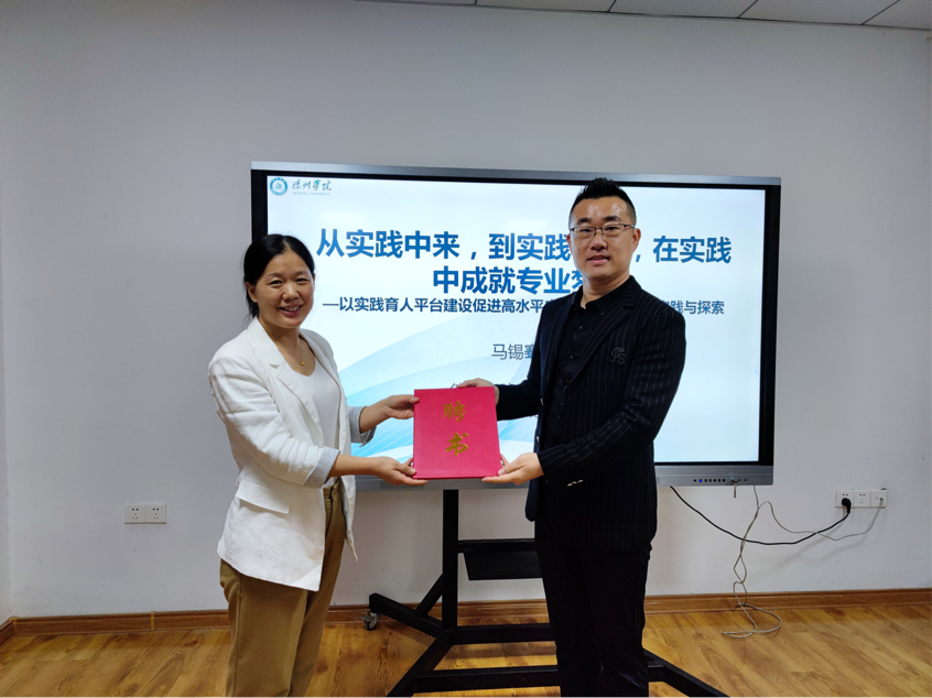 讲座从实践、实验、实训、实习的基本概念;实践教学体系的基本内容;应用型本科高校实践教学系统化设计的主要思路;实践教学及管理模式的改革与创新以及教学改革与团队建设及管理的主要做法及经验教训五个方面进行交流讲解。同时马锡骞老师鼓励员工在不耽误自己学业的情况下丰富舞台经验。并以自己在大学的亲身经历为例,提到了要在实践中丰富磨练自己的专业知识和能力,要在登台表演的过程中锻炼自己的舞台表演。告诫同学们一定要明确自己的人生目标,并为之奋斗。同学们也积极踊跃的提出了自己的疑问,马锡骞老师耐心的为同学们解答。