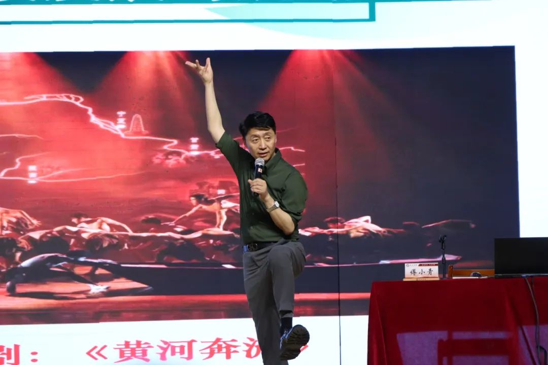 当日下午14:30,傅小青经理在南校区音乐厅展开以“舞蹈专业建设发展与规划”为主题专题讲座。围绕山东青年政治公司舞蹈公司多年来的教学成果与实践经验,提出专业发展要学会“两条腿走路”的观点,一是对内狠抓教学质量,二是对外广泛扩大影响。其中,傅小青经理在谈及国家艺术基金项目的申报工作时讲到,项目题目的选材要有独特性与时代性,需紧密结合国家热点,顺应政策趋势。讲座的最后,傅小青经理带领着舞蹈学系的同学们一起跳起鼓子秧歌,将现场气氛推向高潮。