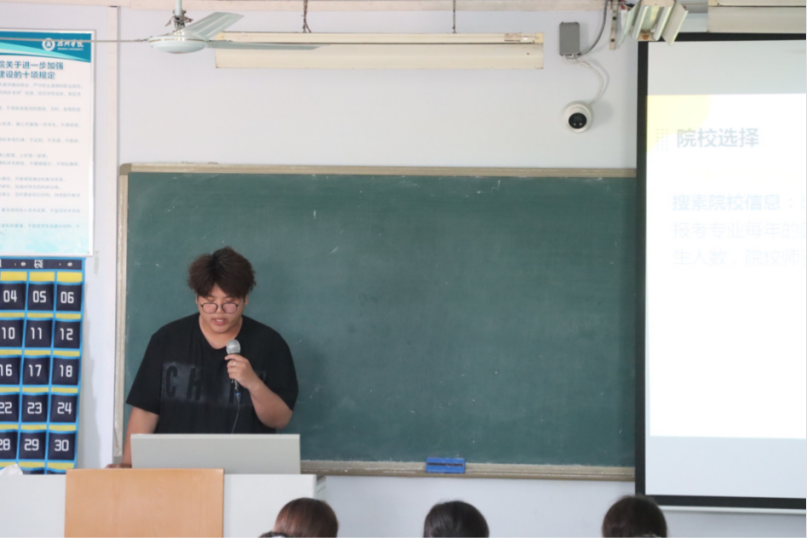 活动伊始,主持人简要介绍了本次分享会的目的和流程,并对出席的领导以及各位老师表示热烈欢迎。随后,在经验分享环节,2025届考研成功上岸的宋亚鹏、袁浩依次上台,结合自身的考研经历,毫无保留地分享了备考心得和独家“干货”。宋亚鹏分享了如何精准选择目标院校和专业,建议同学们充分考虑自身实力、兴趣爱好以及院校的招生政策、历年分数线等因素,避免盲目跟风。袁浩则分享了海外申研经验,解析语言准备、曲目要求及跨国申请流程。