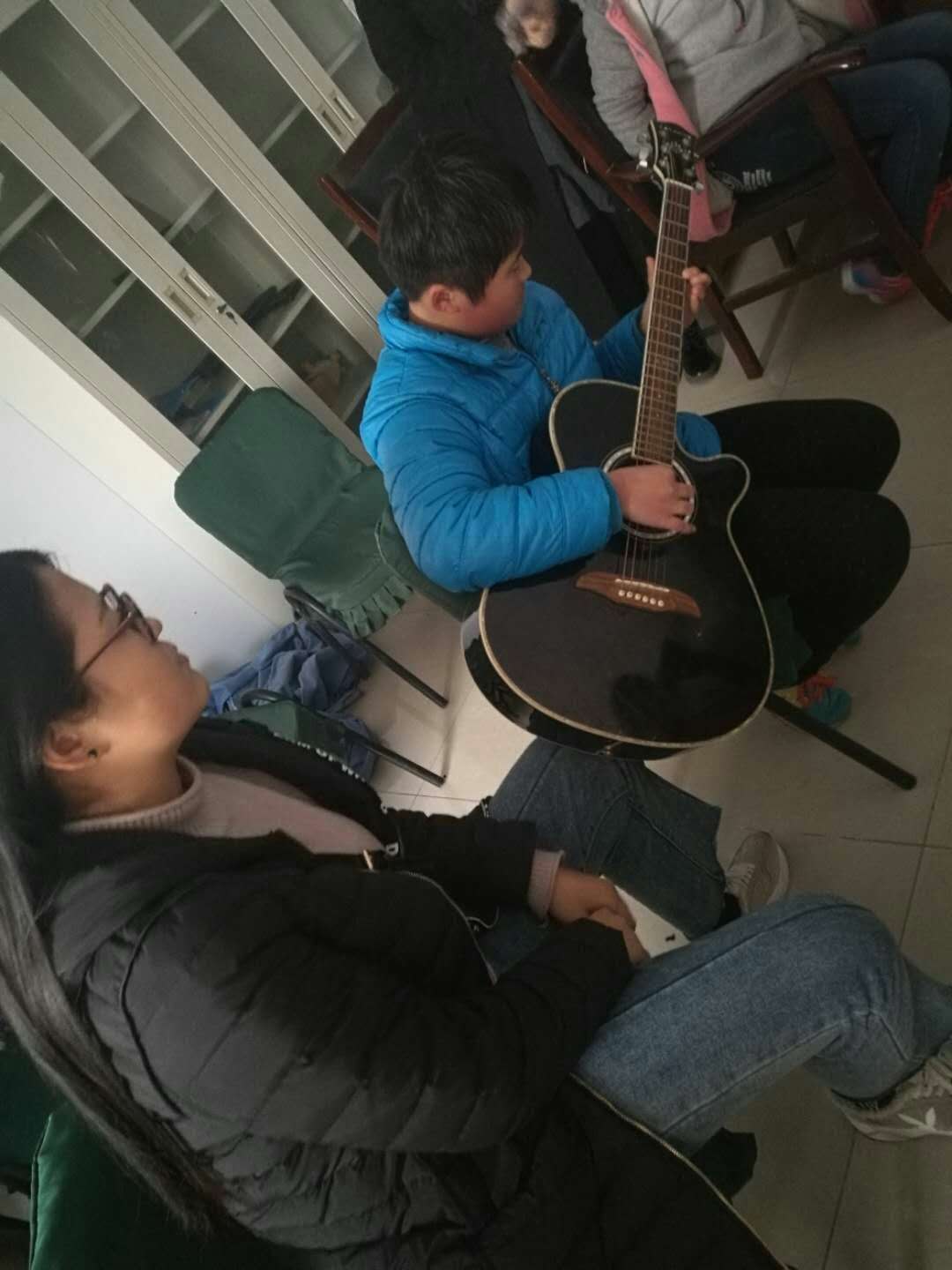 这次准备元旦节目,体现了孩子们对音乐的热爱,也表现出志愿者们对孩子们的关爱。