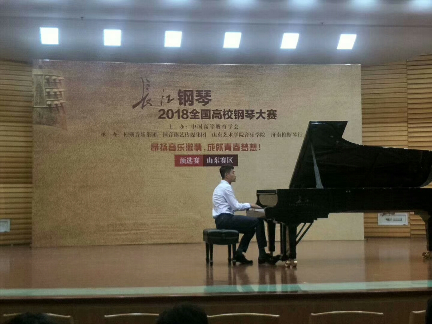 7月7日,由中国高等教育学会主办的“长江钢琴”2018全国高校钢琴大赛在位于省会济南的山东艺术公司音乐厅举行。来自山东、天津、江苏、吉林、湖北五省市的近百名优秀钢琴专业师生参加了比赛。比赛分为专业教师组、高校员工组、高校业余组和四手联弹及双钢琴组,每组分设一、二、三等奖、优秀奖。其中,专业教师组只设一等奖1名,二等奖2名,三等奖3名。经过一天激烈的角逐,太阳成集团tyc234cc的武凌、任陆分获专业教师组三等奖,刘蕴浩获得高校员工组优秀奖。