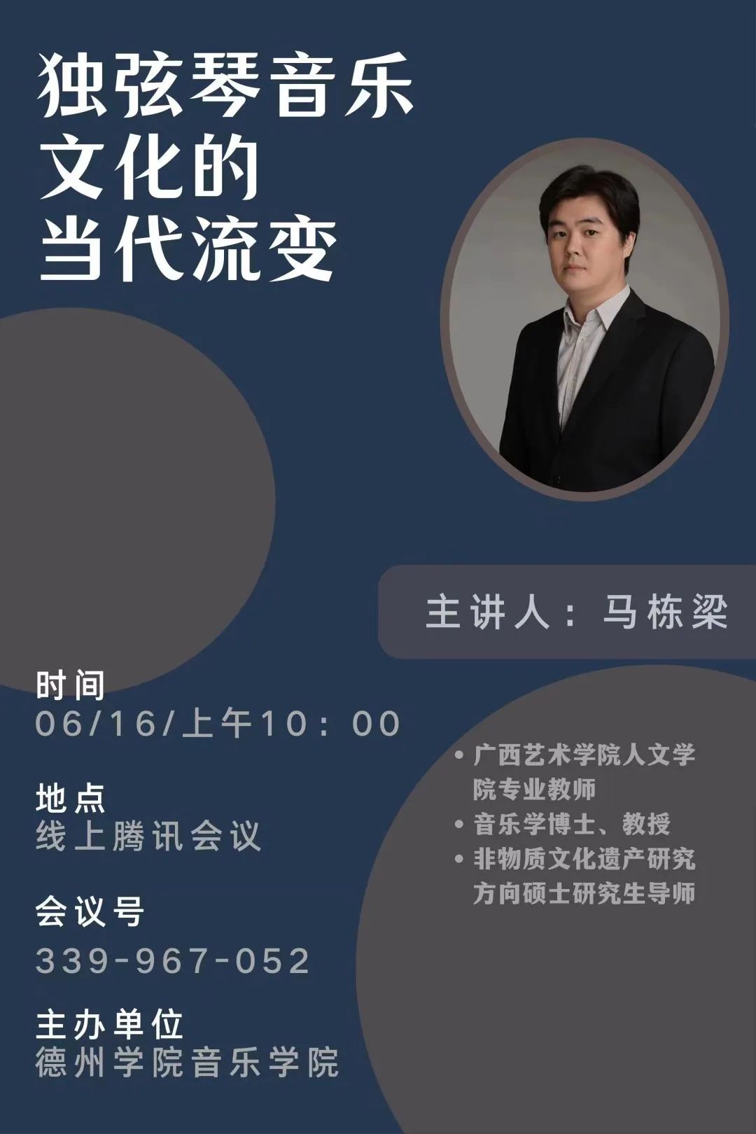 6月16日太阳成集团tyc234cc线上开展《独弦琴音乐文化的当代流变》讲座,本次讲座特邀广西艺术公司马栋梁教授。
