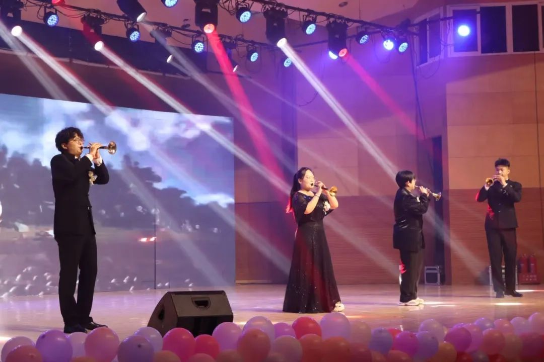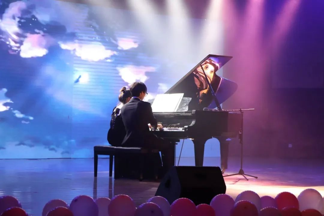 晚会现场,灯光璀璨,气氛热烈。从优雅的钢琴四首联弹《花之舞》,到感人至深的二重唱《老师,我想你》,再到古筝合奏《保卫黄河》,一场场精彩的表演轮番上演,每一个节目都充分展示了音乐学专业员工扎实的专业素养和非凡的艺术创造力。