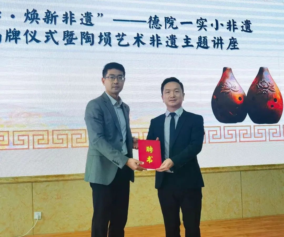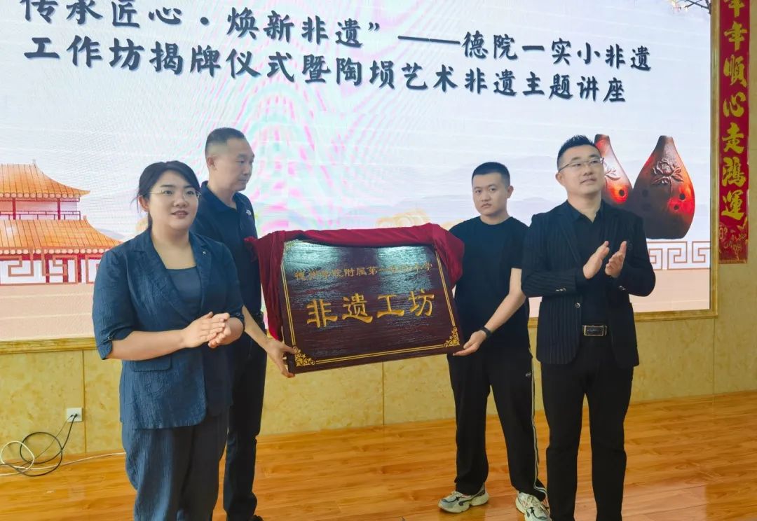 4月30日,公司赴太阳成集团tyc234cc附属第一实验小学参加非遗工作坊揭牌仪式,并作陶埙艺术非遗主题讲座。