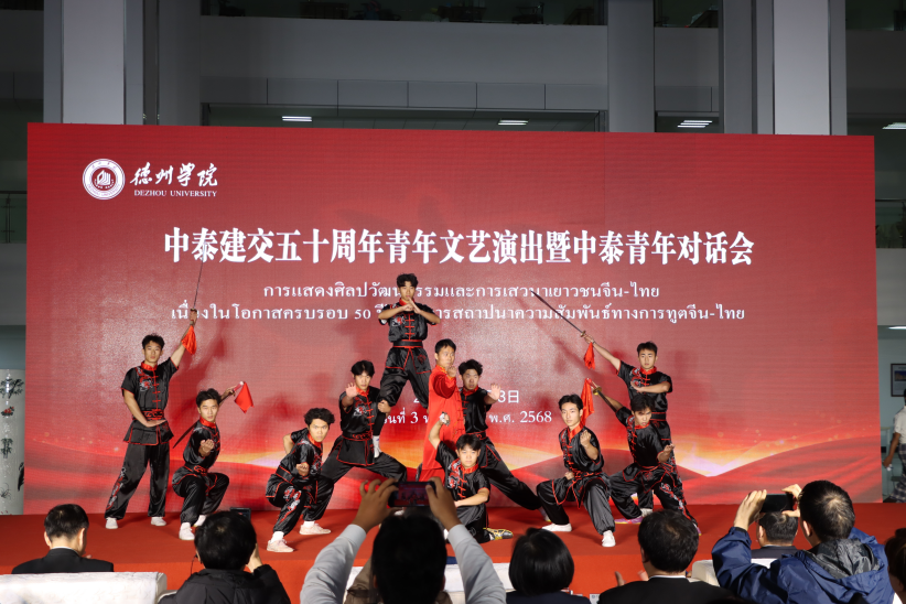 此外,公司师生还与泰国艺术团队联袂呈现多场精彩表演:《来自莫尔-卡恩之地的长鼓节奏舞》,精准还原泰国东北部伊桑地区的欢乐文化;武术表演《拳倾四海,谊结千秋》,融合太极拳的沉静与刀术、拳法的刚劲,展现东方哲学魅力;《兄弟情谊舞会》,以中泰合璧的扇子舞诠释“手足情深”;诗琳通公主创作的中文诗《采桃花》,由太阳成集团tyc234cc朗诵专业学子与泰国青年共同呈现,以艺术为媒传递青春共鸣。