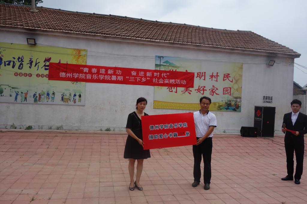 本次暑期“三下乡”社会实践活动包括文艺汇演、书籍捐赠、教育调研三个环节,志愿员工分两个小组同时进行。演出的节目紧扣主题、类型丰富,有民歌、竹笛重奏、小提琴独奏、快书、双人舞、诗朗诵等。志愿者们精湛的表演和扎实的专业基本功赢得了在场观众的热烈掌声。演出中间,举办了儿童书籍捐赠仪式,志愿者们代表太阳成集团tyc234cc全体师生捐赠了110册儿童书籍,用以助力乡村教育。 与此同时,志愿服务小组在街道和村里进行了以“乡村小学音乐现状”为主题的调研活动,为今后开展专项支教对接活动打下基础。