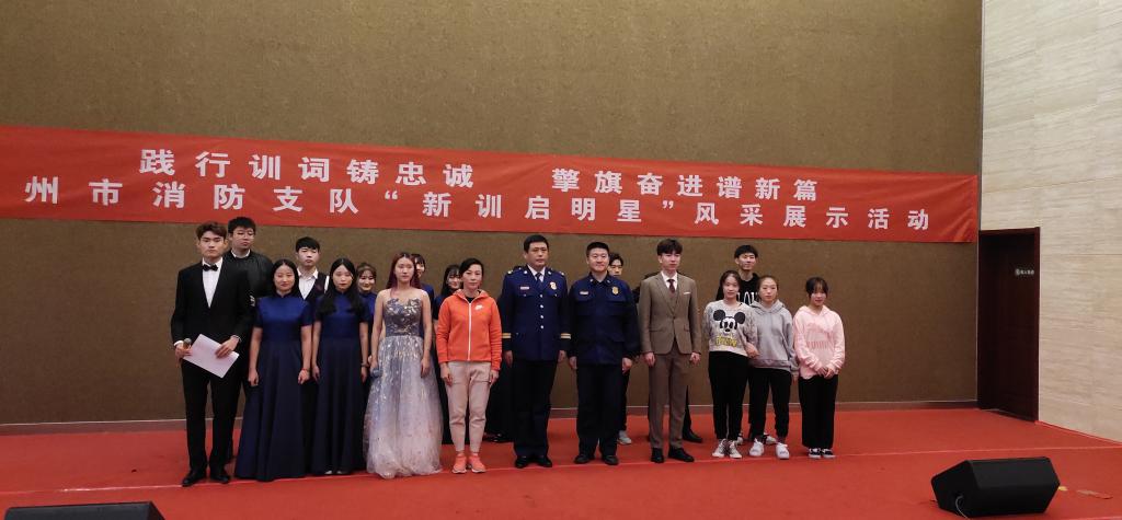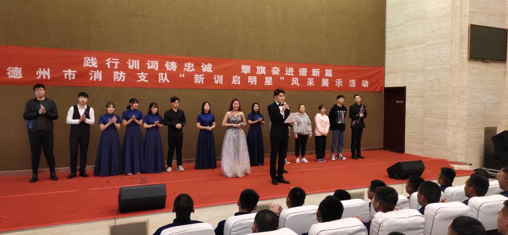 结合“不忘初心、牢记使命”主题教育,引领师生以实际行动深化双拥工作,10月25日下午,公司师生来到德州市消防支队慰问演出,与广大消防官兵欢聚一堂,用歌曲、舞蹈、器乐等表演形式庆祝消防支队“新训启明星”风采展示活动,共叙军民鱼水情。