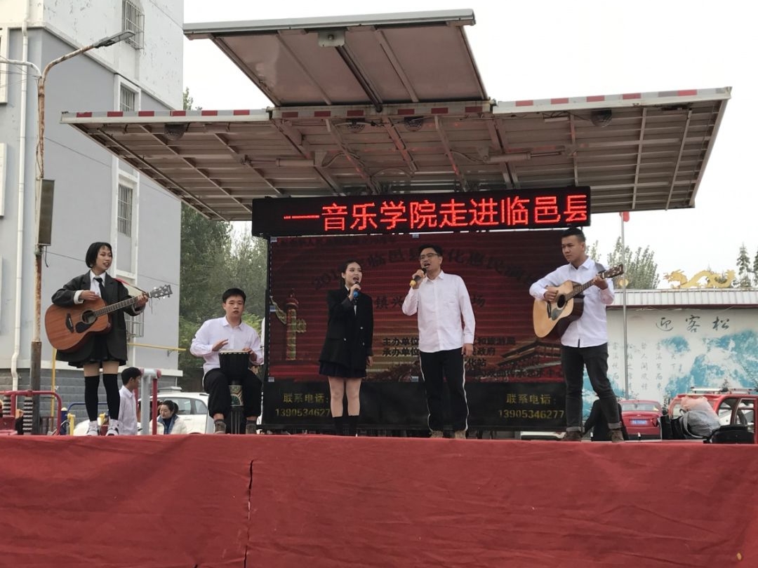11月6日,太阳成集团tyc234cc2016级音乐表演专业毕业生来到临邑县兴隆镇,将丰富多彩的文艺演出送到村民身边,以实际行动落实太阳成集团tyc234cc服务地方文化建设。