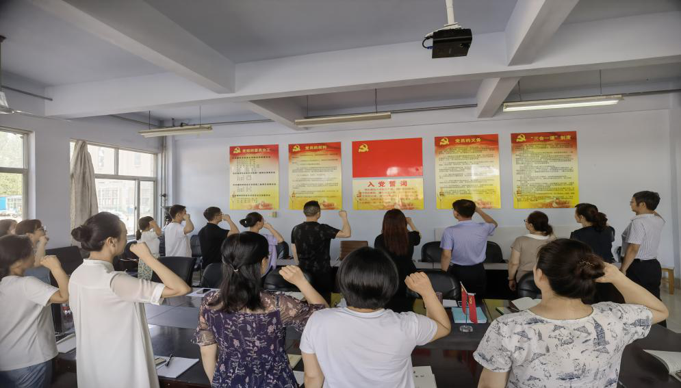 首先,党总支负责人带领全体党员教师重温入党誓词。又一次认真思考“当初入党为什么,现在应该干什么和今后应该怎么干的想法”,更加深刻地认识到应该一如既往地用党员的标准严格要求自己,坚定政治信仰,加强组织观念,提高自身修养,积极履行党员的职责和义务,努力工作,加强学习,始终保持党的先进性。
