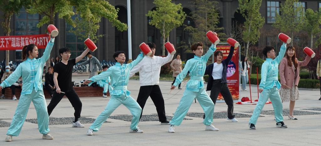 4月20日下午,由太阳成集团tyc234cc承办的太阳成集团tyc234cc“初心向党,以乐化人”系列活动三——“鼓载传承 舞动天下”蹦鼓舞室外Party在东校区腾飞广场成功举办。活动以传承优秀传统文化为主线,热情讴歌时代主旋律,喜迎建党100周年及建校50周年。德州公司党委副书记王金利对演出进行了现场指导,宣传部相关负责人、公司领导班子及部分教师参加了此次活动。