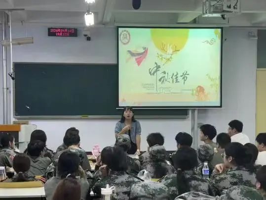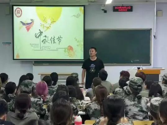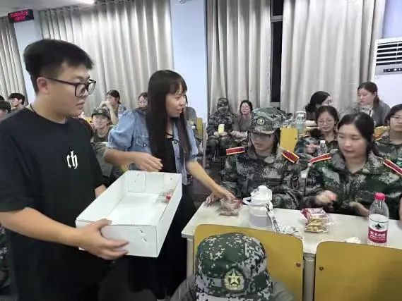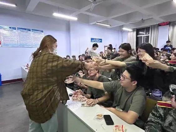 公司教师代表陈璨、唐恒新走进新生队伍,为同学们送中秋月饼,与同学们聊中秋文化,让同学在艰苦的军训训练之余感受到公司的温暖。