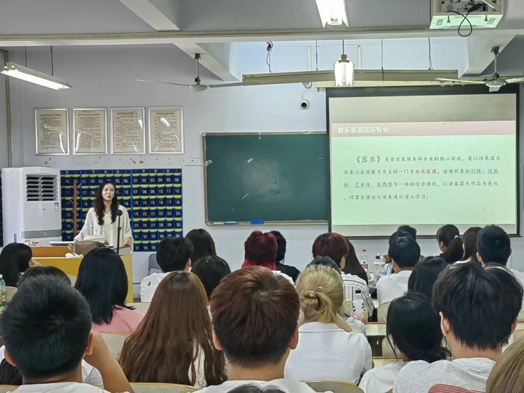 为让新生更好地开启大学学习生涯,了解专业学科发展前沿,以广阔视野激发学习动力,音乐学、音乐表演、舞蹈学系主任或负责人向新生介绍专业特点与发展现状、公司团队情况、人才培养方案以及专业学习方法等内容,经理利用开学典礼、家长课堂等形式为新生及家长说专业,说就业前景,帮助新生了解了专业发展动态,树立了专业学习信心。