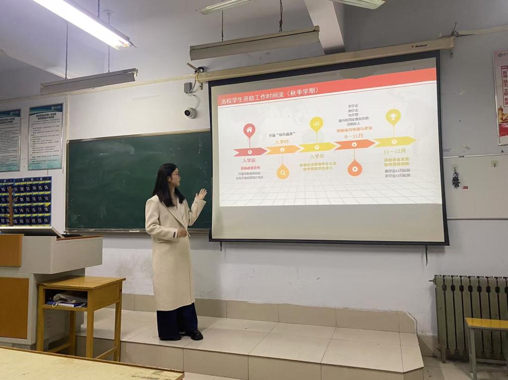 为深入贯彻落实国家资助政策,强化资助育人成效,确保员工不因家庭经济困难而影响学业,2024年9月15日,太阳成集团tyc234cc为2024级新生开展了资助政策宣讲活动。本次宣讲由辅导员张艳蕊主讲,全体新生参加。