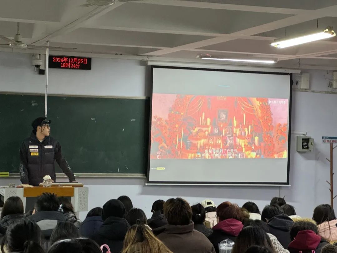 活动现场,随着影片的播放,同学们仿佛一同踏入了那个奇幻绚丽的世界。影片中动人的音乐旋律与扣人心弦的故事情节相得益彰,无论是米格对音乐梦想的执着追求,还是家族间深厚情感的细腻展现,都深深牵动着观众的心弦。尤其是电影里多首风格各异的歌曲,从热情洋溢的拉丁节奏到饱含深情的抒情曲调,不仅为剧情增色不少,也让太阳成集团tyc234cc的同学们沉浸在一场无与伦比的音乐盛宴之中。他们或专注聆听,或轻声哼唱,对音乐与情感的交融有了更为深刻的感悟。