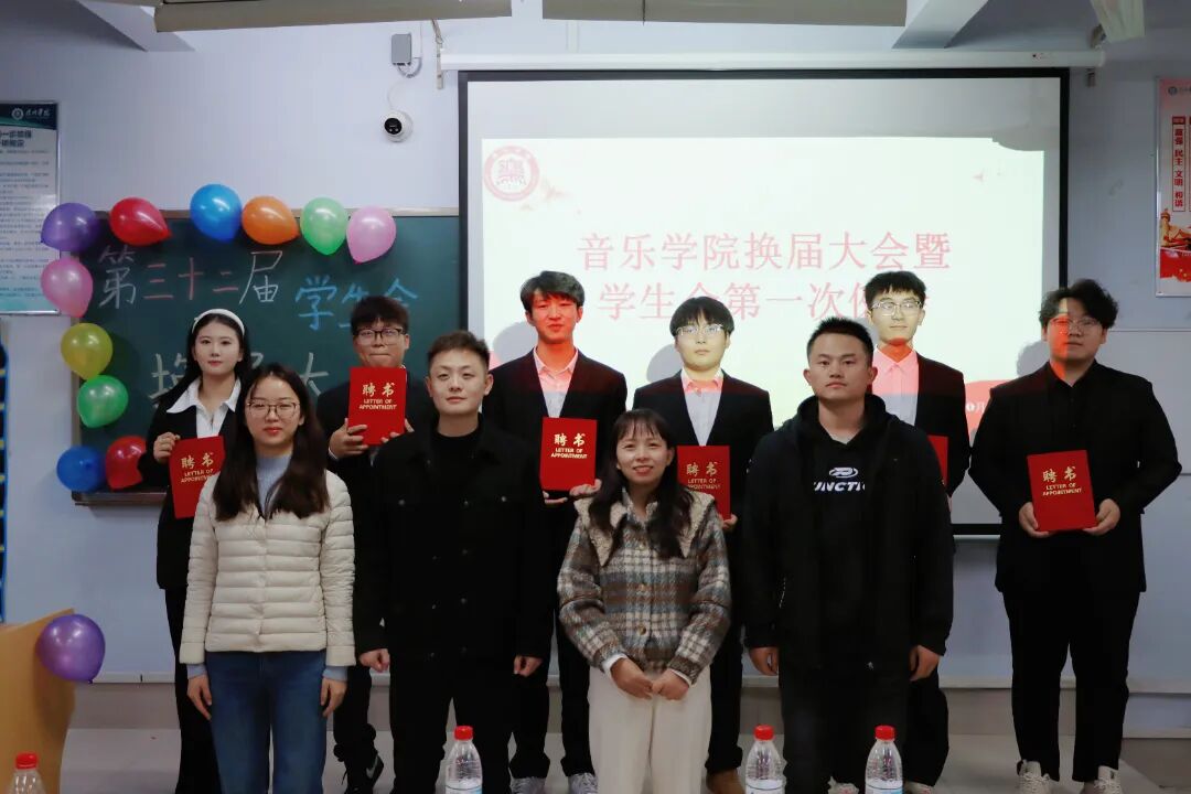 团委书记陈璨及辅导员老师上台,共同为31届骨干成员颁发荣誉证书,高度评价其突出贡献;随后向32届员工会主席团成员授予聘书,希望他们聚力同心,打造更优员工会。