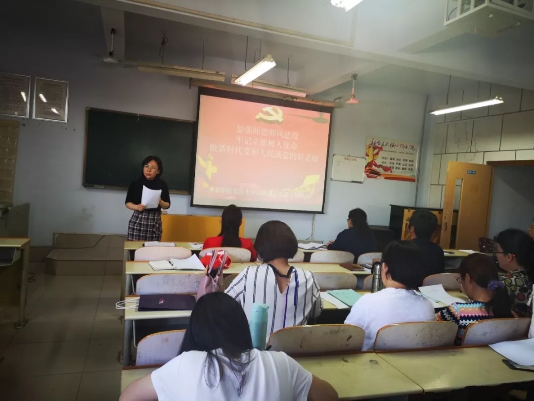 党总支书记高莉要求全体教职工在公司产品过程中坚持立德树人,以新时代高校教师职业行为准则严格要求自己,以德立身、以德立学、以德施教、以德育德,按照习近平总书记提出的“四个相统一”要求,以“四有”好老师标准,做好员工领路人。 随后,全体教师进行了宣誓活动。