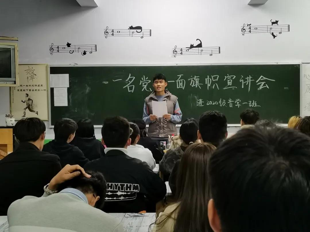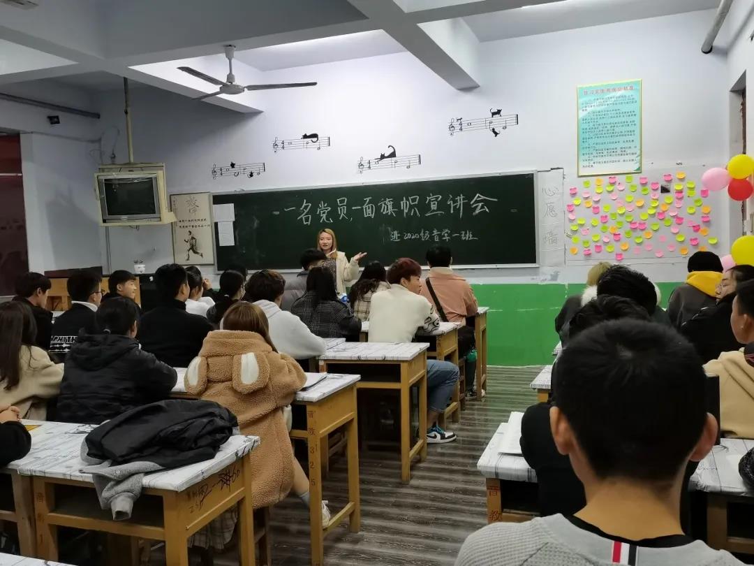 为持续深入推进“不忘初心、牢记使命”主题教育,弘扬爱国主义,太阳成集团tyc234cc组织开展“一名党员一面旗帜”宣讲会。员工党员杨子琪分别走进班级、支部给同学们讲述了四个红色经典小故事。