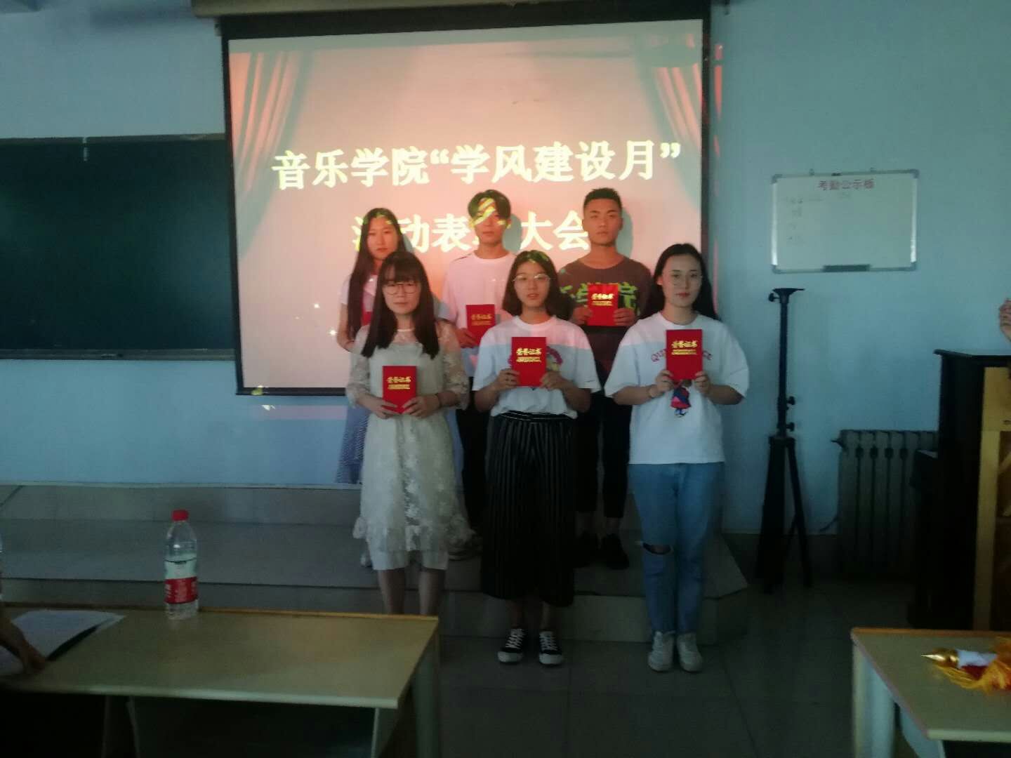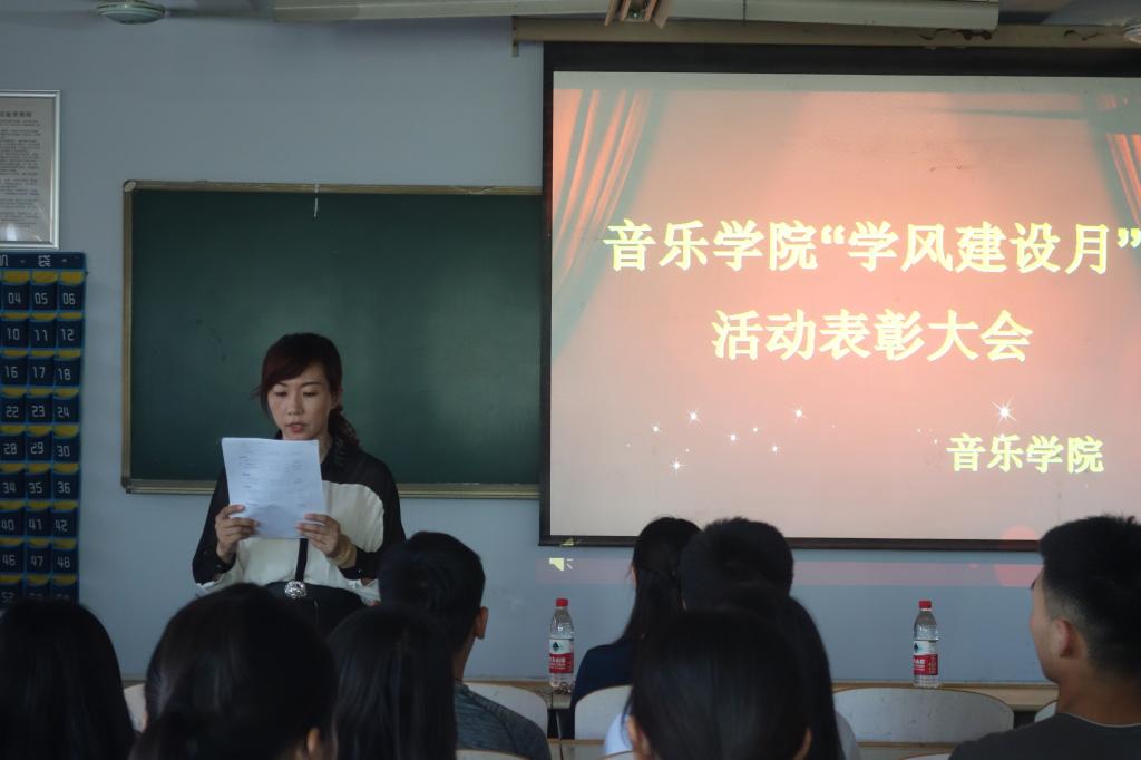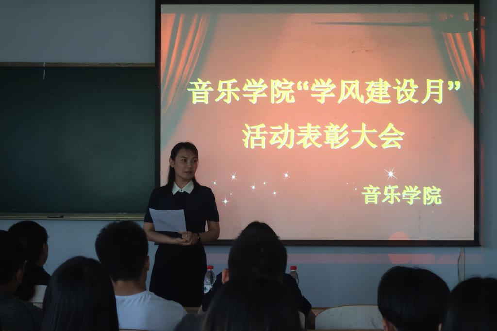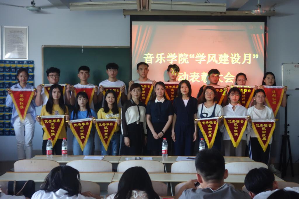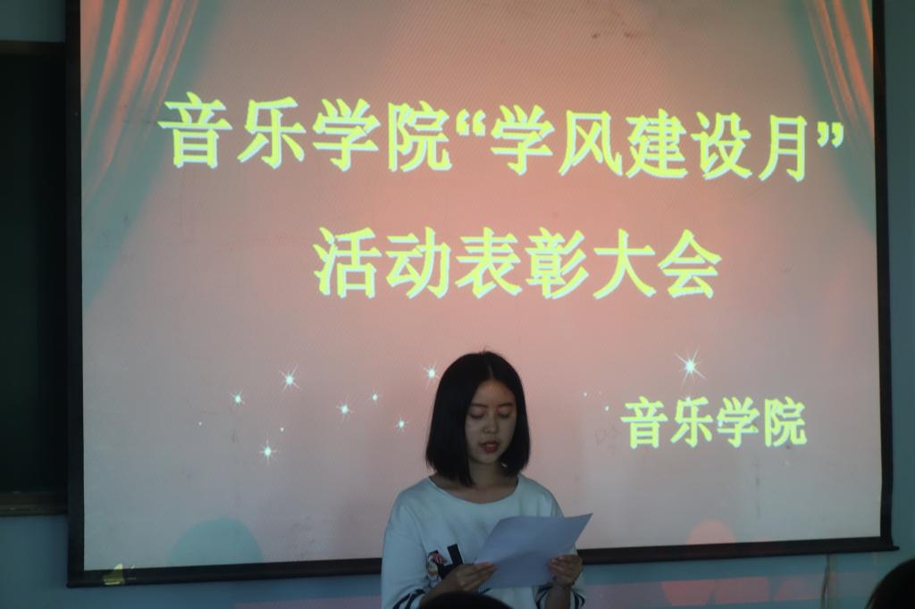 本次学风建设月共开展了“组织学习习近平总书记对当代青年的寄语以及习近平总书记系列讲话”、“英语趣配音”、“单词打卡”、“诗词大会”、“图书漂流会”及员工宿舍“断舍离”等多项丰富多彩、寓教于乐的活动,特别是围绕学风建设,结合音乐专业特色,开展了学风建设品牌特色创建活动——“音为梦想,谱写篇章”钢琴大赛。在总结大会上,各位老师对表现突出的先进个人和先进集体进行了表彰颁奖,党总支书记高莉进行了总结发言,要求全院上下牢固树立常抓不懈的思想,一方面要巩固“学风建设月”活动取得的成果,坚持在活动中的一些成功做法和经验;另一方面要把学风建设做为常项工作,长期抓,反复抓,以教风带学风,以管理育学风,以榜样树学风,以活动促学风,真正营造出“院风正、教风严、学风浓”的大氛围。