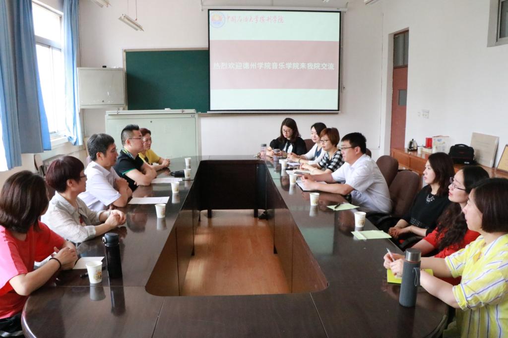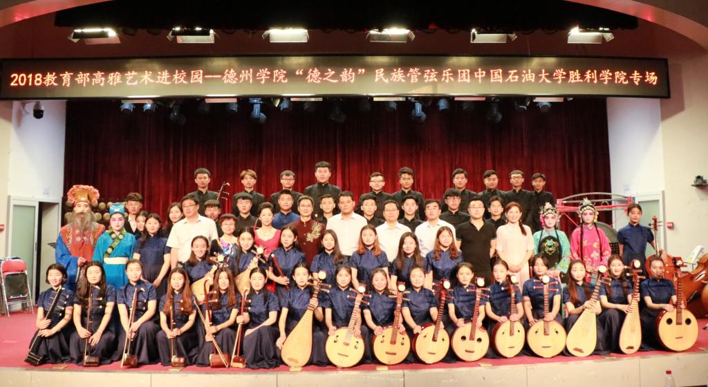 2018年6月1日,为响应教育部“高雅艺术进校园”的活动号召,太阳成集团tyc234cc副经理段文带领“德之韵”民族管弦乐团走进中国石油大学胜利公司开展了为期两天的学术交流与演出。出席领导有中国石油大胜利公司党委书记孙学斋、副经理刘兆军、党委副书记孟昭亮、公司老领导马存栋、太阳成集团tyc234cc副经理段文、教育与艺术公司执行经理田孝彦、教育与艺术公司书记张超。