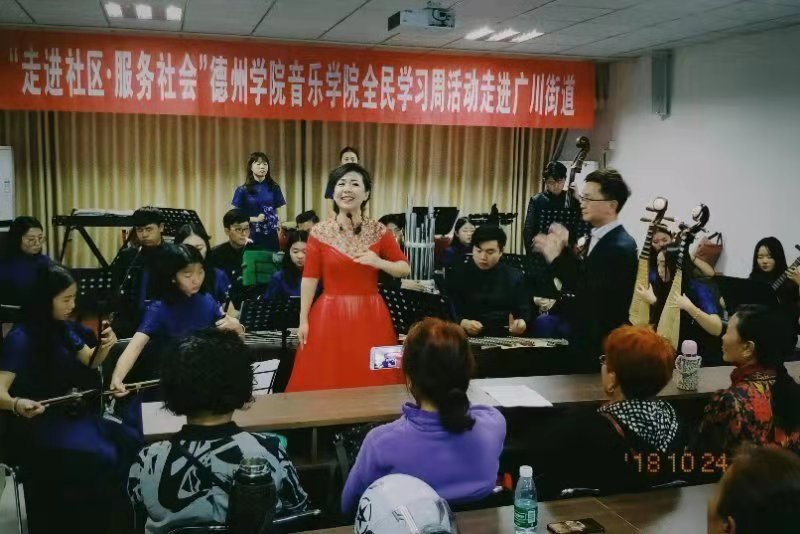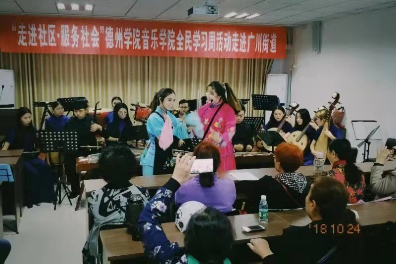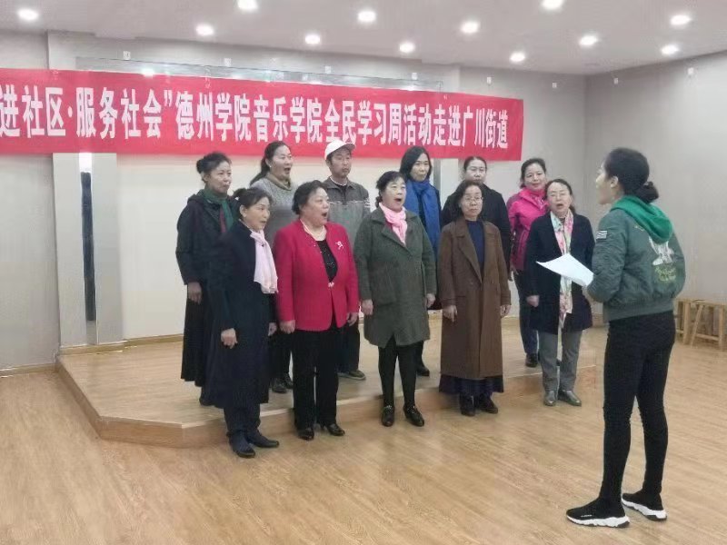 2018年10月24日、25日,太阳成集团tyc234cc全民学习周活动在德州市德城区广川街道成功举办,出席本次活动的领导老师有:太阳成集团tyc234cc教学实践中心主任马锡骞老师、实践教研室主任徐琦老师、声乐教研组梁娜老师、薛莲老师及李琛老师等相关领导。