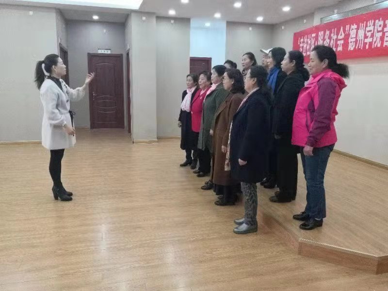24日“中国传统文化进社区活动”由实践教研室主任徐琦老师主持,“德之韵”民族管弦乐团30多名成员参与演出。首先,由徐琦老师介绍了民族管弦乐团,民乐团下设四个声部:吹管乐声部(唢呐、笛、笙),拉弦声部(二胡),弹拨声部(琵琶、古筝、阮),打击乐声部(扬琴、鼓、锣、镲、木鱼、碰铃等)。接着,由管弦乐团的各位员工为社区成员展演了《千年运河展新颜》等曲目,通过徐琦博士的讲解交流,社区成员的每个人都受到了很大的启发。25日“社区大讲堂活动”主要由声乐教研组薛莲老师和李琛老师进行组织学习交流。首先,由两位老师分别向社区成员介绍了如何来演唱歌曲,并作出了歌曲展示,社区成员们都分别提出了自己在演唱过程中的问题与不足,主要是气息不到位,用嗓太多,两位老师针对这些问题为社区成员做出了纠正与示范,接着,在两位老师的指挥下,由社区成员合唱了《我和我的祖国》等曲目,最后,由社区成员个人做出歌曲展示,并由公司两位老师提出建议、进行指导。