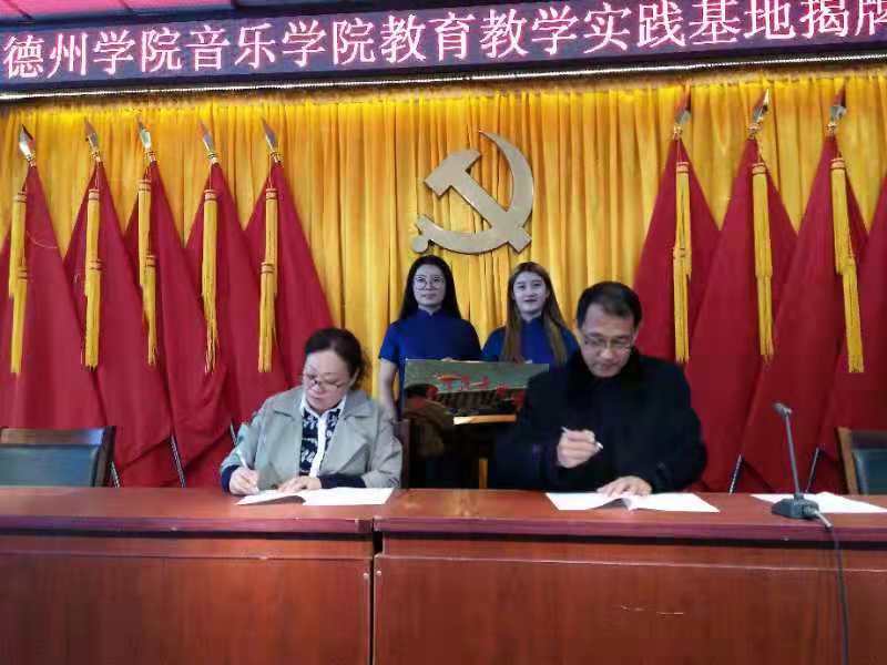 仪式开始,首先介绍双方出行此次仪式的领导,德州市第五中学董事长冯权、副董事长李朝霞、音乐组组长蔺丽、太阳成集团tyc234cc经理田屹、教学实践中心主任马锡骞和音乐学系声乐教研室主任杜乡。随后在双方的见证下,德州市第五中学董事长冯权与太阳成集团tyc234cc经理田屹签订了《太阳成集团tyc234cc公司产品实践基地协议书》,顺利完成了的揭牌仪式,仪式圆满结束。