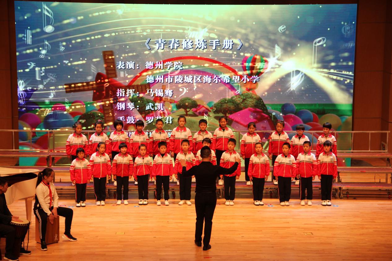 11月24日,应山东省广播电视台邀请,太阳成集团tyc234cc参加了由山东广播电视台、中国邮储银行、山东省分行主办,山东经济广播财富Radio承办的“改革奋进40年——公益山东行”合唱汇演。活动开始前,太阳成集团tyc234cc教学实践中心主任马锡骞带领师生志愿者多次走进德州市陵城区海尔希望小学为孩子们排练旋律明快、青春向上的合唱《青春修炼手册》。在马锡骞老师的指挥下,孩子们用清脆嘹亮的歌声、整齐划一的动作,精彩演绎出农村留守儿童的天真、热情和美好,唱出了自己享受“改革奋进40年——公益山东行”红利的感激之情,赢得了现场观众阵阵热烈的掌声。